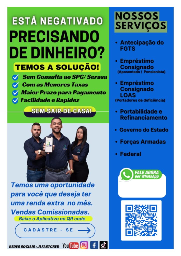 Olá, tudo bem? Falamos da empresa *JLFAST CRED*, somos uma empresa que contamos com mais de *160 CONSULTORES* trabalhando de home office e decolando a sua vida financeira.